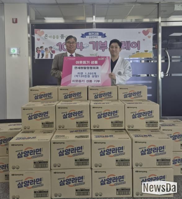 뉴스다 최광묵 기자 | 양주시 회천2동 연세원탑정형외과가 지난 21일 회천2동 행정복지센터에 라면 1,500개(약 120만 원 상당)를 기부했다.