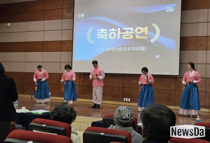 뉴스다 최광묵 기자 | 사천시 거북선농촌체험휴양마을 주민들로 구성된 민요팀이 농촌체험휴양마을 활성화 및 지속가능한 발전을 위한 제15회 정기총회 개막식에서 축하공연을 선보이며 행사의 시작을 알렸다.