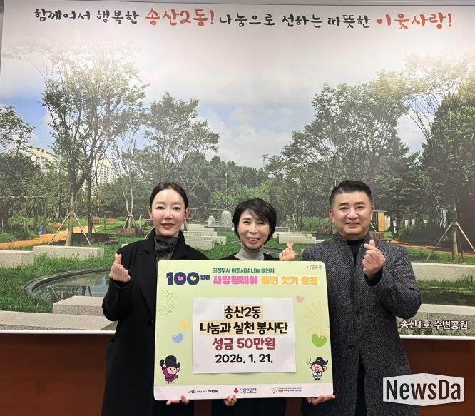 뉴스다 최광묵 기자 | 의정부시 송산2동주민센터는 1월 21일 나눔과실천 봉사단이 성금 50만 원을 기탁했다고 밝혔다.