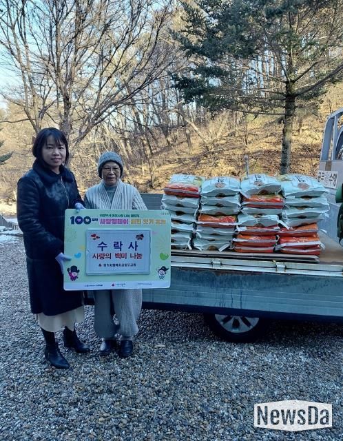 전선녀 동장은 “오랜 기간 이웃사랑을 실천해 주신 수락사에 깊이 감사드리며, 기탁해 주신 백미는 관내 도움이 필요한 이웃들에게 소중히 전달하겠다”고 말했다.