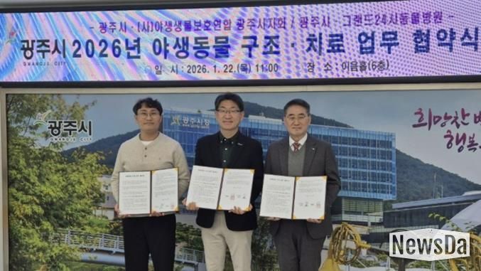 뉴스다 최광묵 기자 | 광주시는 지난 22일 시청 이음홀에서 지역 내에서 발생하는 부상 야생동물의 신속한 구조와 치료를 위해 (사)야생생물보호연합 광주시지회 및 그랜드24시동물병원과 업무협약(MOU)을 체결했다.