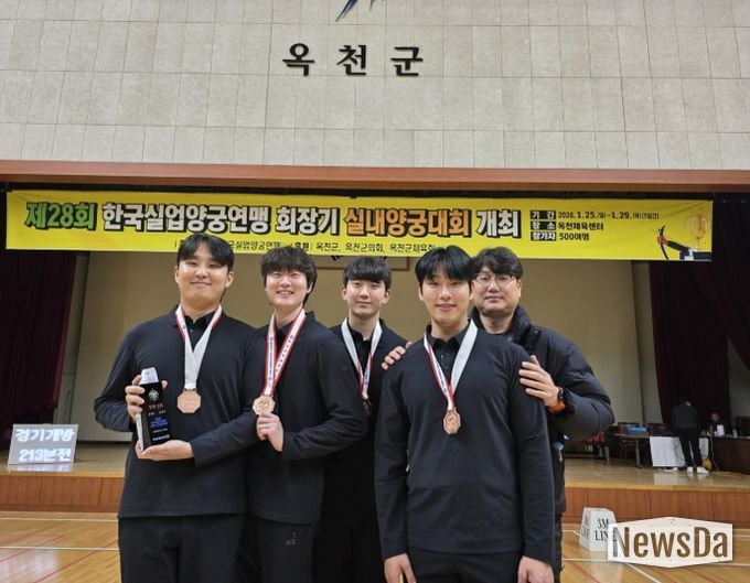 뉴스다 류대현 기자 | 공주시청 남자 양궁팀(감독 박경모)이 충북 옥천군에서 열린 제28회 한국실업양궁연맹 회장기 실내양궁대회에서 단체전 동메달을 획득하며 올 시즌 기분 좋은 출발을 알렸다.