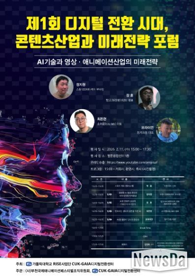 뉴스다 최광묵 기자 | 제28회 부천국제애니메이션페스티벌은 가톨릭대학교 RISE사업단 CUK-GAIA디지털전환센터가 주최하고, BIAF와 CUK-GAIA디지털전환센터가 공동 주관하는 『디지털전환시대, 콘텐츠산업과 미래전략』 포럼을 오는 2월 11일 개최한다.
