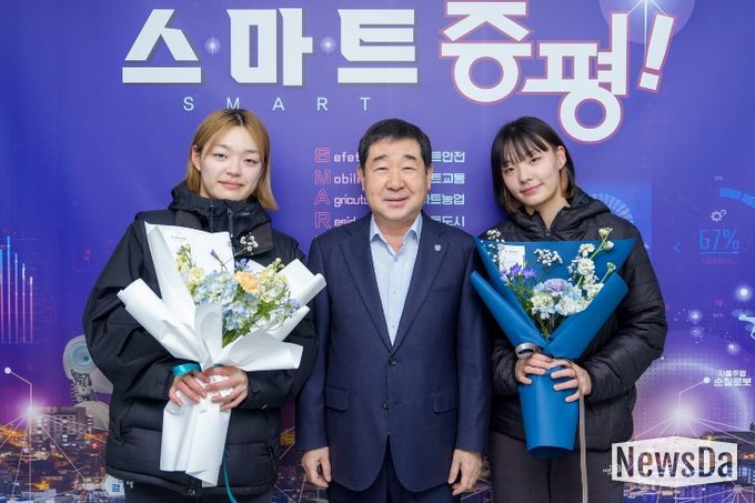 뉴스다 류대현 기자 | 충북 증평군은 6일 군수 접견실에서 제23회 전국장애인동계체육대회 컬링 종목에서 은메달을 획득한 서은지·서은주 선수를 초청해 축하와 격려의 시간을 가졌다.