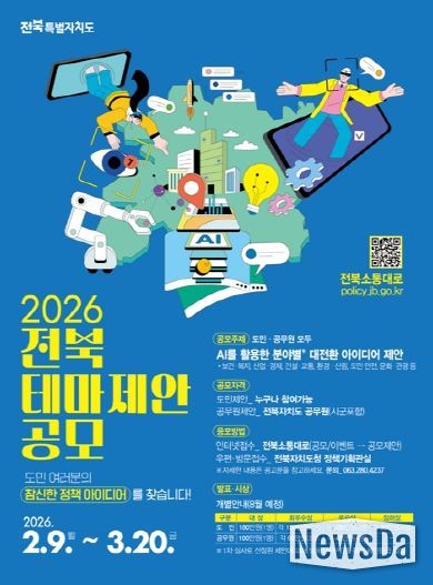 뉴스다 최광묵 기자 | 전북특별자치도가 인공지능(AI)을 활용한 도정 혁신 아이디어를 찾기 위해 도민과 공무원을 대상으로 대규모 정책 제안 공모에 나선다.