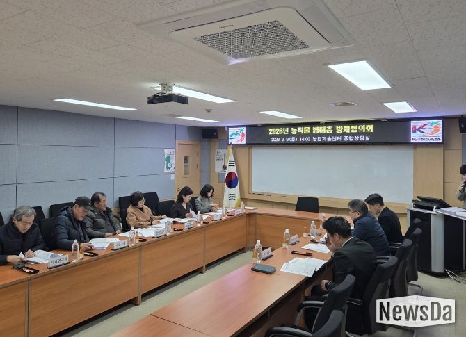 뉴스다 최광묵 기자 | 금산군농업기술센터는 지난 9일 센터 종합상황실에서 지역 농업의 안정적인 생산 기반 조성과 병해충 피해 최소화를 위한 농작물 병해충 방제협의회를 개최했다.