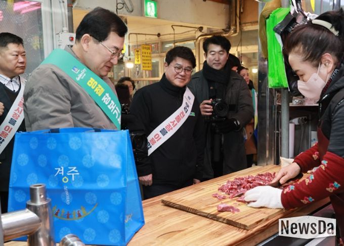 뉴스다 최광묵 기자 | 주낙영 경주시장이 설 명절을 앞두고 전통시장을 연이어 찾으며 민생경제 살리기에 나섰다.