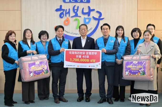 뉴스다 최광묵 기자 | 국제위러브유운동본부 울산지부(지부장 홍창민)는 남구청을 방문해 관내 저소득 취약계층을 위한 170만 원 상당의 겨울 이불 40채를 전달했다고 12일 밝혔다.