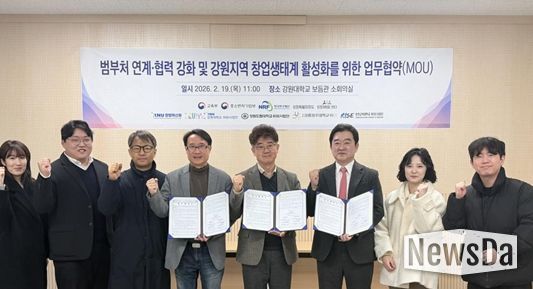 뉴스다 최광묵 기자 | 강원도립대학교 라이즈(RISE) 사업단 로컬창업센터는 2월 19일 강원대학교 보듬관에서 강원대학교 KNU 창업혁신원, 강원대학교 라이즈(RISE) 사업단, 강릉원주대학교 라이즈(RISE) 사업단 등과 함께 범부처 연계·협력 강화 및 강원지역 창업생태계 활성화를 위한 업무협약(MOU)을 체결했다고 밝혔다.