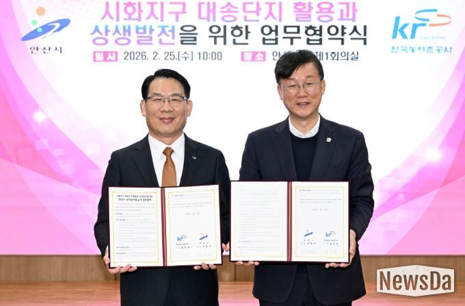 뉴스다 최광묵 기자 | 안산시는 한국농어촌공사와 안산시청에서 '시화지구(대송단지) 간척지 활용과 상생발전을 위한 업무협약'을 체결했다고 25일 밝혔다.