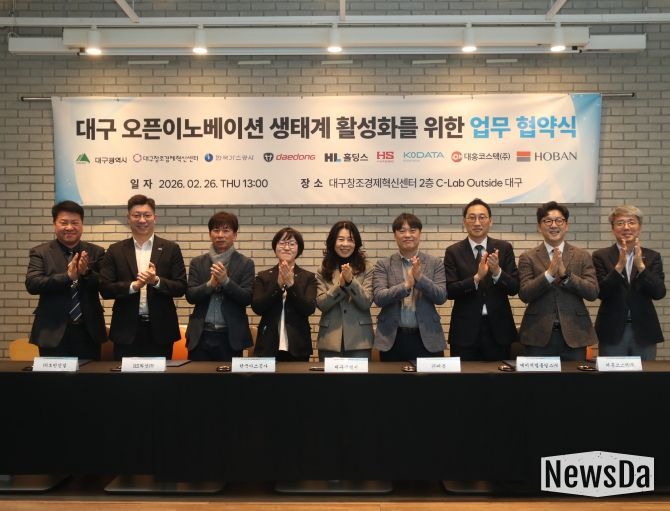 뉴스다 최광묵 기자 | 대구광역시와 대구창조경제혁신센터는 2월 26일 대구센터 2층에서 ‘대구 스타트업 오픈이노베이션 지원사업’ 공동 운영을 위한 업무협약(MoU)을 체결했다.