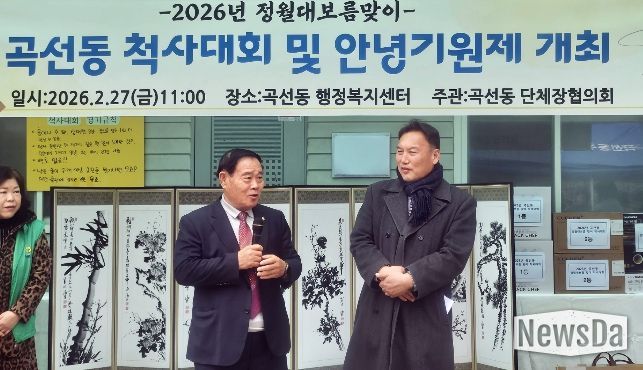 뉴스다 최광묵 기자 | 수원특례시의회는 2월 27일 곡선동 행정복지센터에서 열린 정월대보름 척사대회에 참석해 주민들과 함께 한 해의 건강과 풍요를 기원했다. 이날 행사에는 기획경제위원회 장정희 위원장(더불어민주당, 권선2·곡선), 도시미래위원회 이찬용 위원장(국민의힘, 권선2·곡선)도 함께했다.