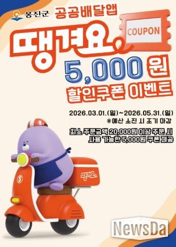 뉴스다 최광묵 기자 | 옹진군은 지역 소상공인의 매출 증대와 군민의 생활비 부담 완화를 위해 공공배달앱 '땡겨요' 할인쿠폰 이벤트를 시행한다고 밝혔다.