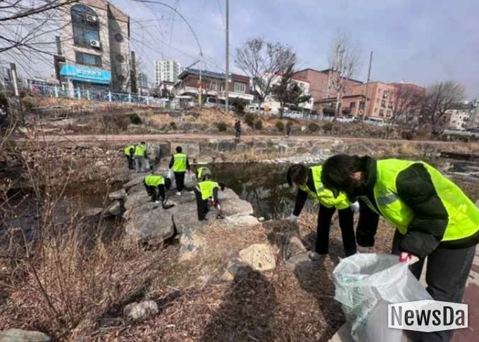 뉴스다 최광묵 기자 | 수원특례시가 봄을 맞아 5일 수원천 산책로와 제방 일원에서 하천을 정비했다.