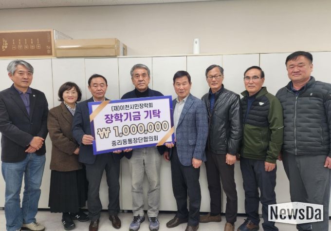 뉴스다 최광묵 기자 | 중리동 통장단협의회는 지난 3월 4일 지역 인재 육성을 위해 이천시민장학재단에 장학금 100만 원을 기탁했다.