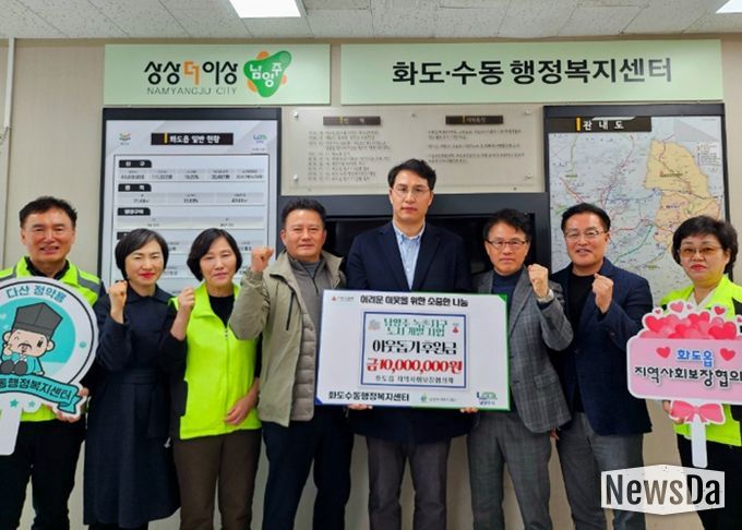 뉴스다 최광묵 기자 | 남양주시는 지난 4일 녹촌지구 도시개발사업 조합과 중흥토건㈜, ㈜성림그린산업이 화도읍 지역사회보장협의체에 관내 취약계층 가구를 위한 후원금 1,000만 원을 전달했다고 5일 밝혔다.