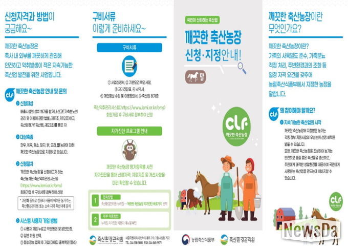 ‘깨끗한 축산농장’은 농림축산식품부 주관 인증 제도로, 축사 내·외부 위생 관리, 가축분뇨 적정 처리, 악취 저감 등 엄격한 기준을 충족한 농가에 부여된다. 이 제도는 농가의 자발적 환경 조성을 유도해 지속 가능한 축산업 기반을 마련하고 시민 생활환경을 개선하는 데 목적이 있다.