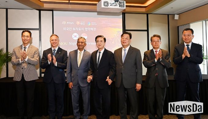 뉴스다 최광묵 기자 | 태안군이 6일 싱가포르 스위소텔 더 스탬포드 호텔에서 뷔나그룹과 1조 원대 재생에너지(해상풍력) 투자협약을 맺고 친환경 에너지 산업 중심지로의 도약에 나섰다.