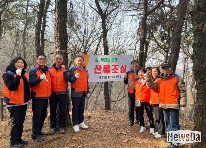 뉴스다 최광묵 기자 | 안양시 안양5동 행정복지센터에 따르면, 지난 5일 안양5동 주민자치위원회가 수리산 일대에서 산불 예방 캠페인을 실시했다고 6일 밝혔다.