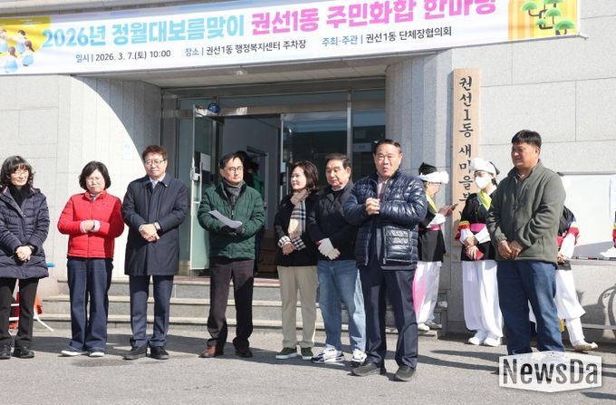 뉴스다 최광묵 기자 | 수원특례시의회는 7일 권선1동 행정복지센터 주차장에서 열린 '2026 권선1동 정월대보름 척사대회'에 참석해 주민들과 함께 전통 명절의 의미를 나누며 지역 공동체 화합의 시간을 가졌다.