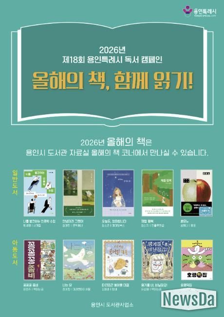 뉴스다 최광묵 기자 | 용인특례시는 ‘나를 발견하는 인류학 수업’ 등 일반 도서 5권과 ‘꽁꽁꽁 좀비’ 등 아동도서 5권 등 총 10권을 ‘2026년 용인특례시 올해의 책’으로 선정했다고 9일 밝혔다.