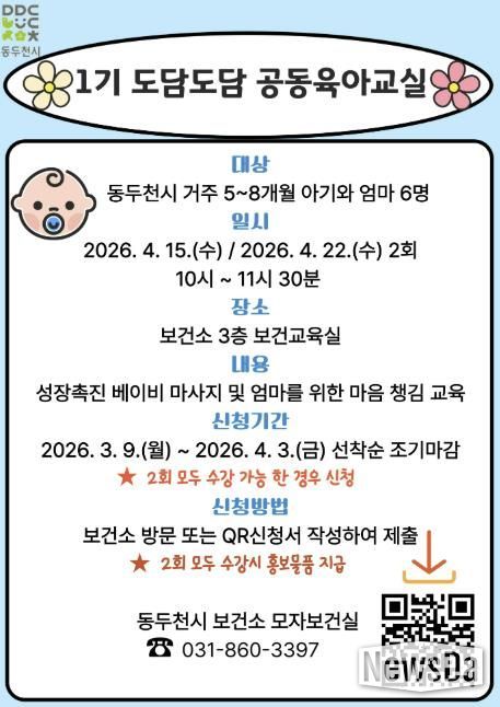 뉴스다 최광묵 기자 | 동두천시보건소는 관내 5~8개월 아기와 엄마를 대상으로 상호작용 증진과 양육 역량 강화를 위해“도담도담 공동육아교실”을 운영한다고 밝혔다.