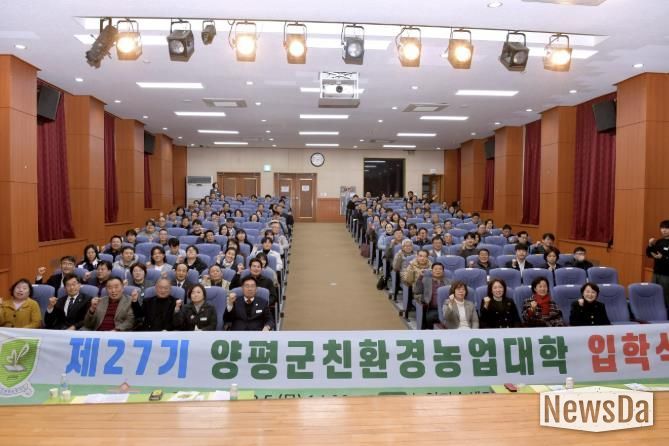 뉴스다 최광묵 기자 | 양평군은 지난 5일 양평군농업기술센터 친환경농업교육관에서 ‘제27기 양평군 친환경농업대학 입학식’을 입학생과 농업 관련 단체 내빈, 대학 관계자 등 120여 명이 참석한 가운데 개최했다고 밝혔다.