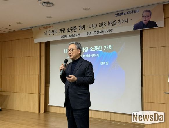 뉴스다 최광묵 기자 | 김천시립도서관(관장 이신기)은 지난 2월 28일과 3월 7일, 정대건 작가와 정호승 시인을 연속 초청해 성황리에 '월간 인문학' 프로그램의 문을 열었다.