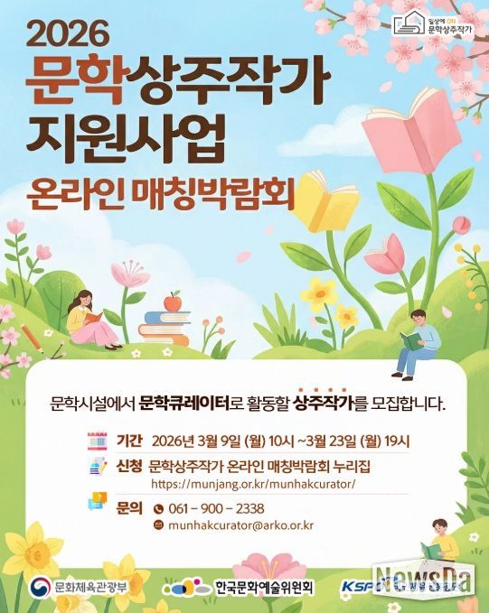 뉴스다 최광묵 기자 | 문화체육관광부는 한국문화예술위원회와 함께 ‘2026년 문학상주작가 지원사업’에 참여할 작가를 3월 9일부터 23일까지 공모한다.