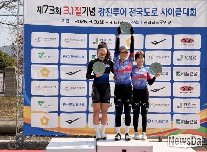 뉴스다 류대현 기자 | 음성군청 자전거팀(코치 김민석)은 지난 3일부터 6일까지 전남 강진군에서 개최된 ‘제73회 3.1절기념 강진투어 전국도로사이클대회’에 출전해 크리테리움 여자일반부에서 김보미 선수가 2위를 차지하며 값진 성과를 거뒀다.