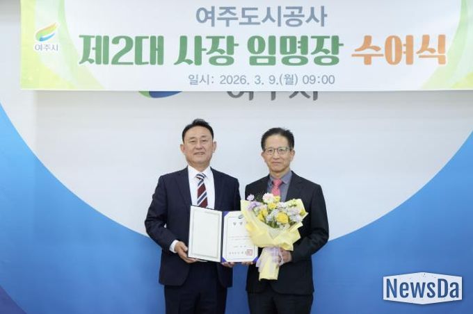 뉴스다 최광묵 기자 | 여주시는 여주도시공사 제2대 사장 김철환을 3월 9일자로 임명하고, 이날 오전 시장실에서 임명장 수여식을 개최했다고 밝혔다. 임기는 3년이다.