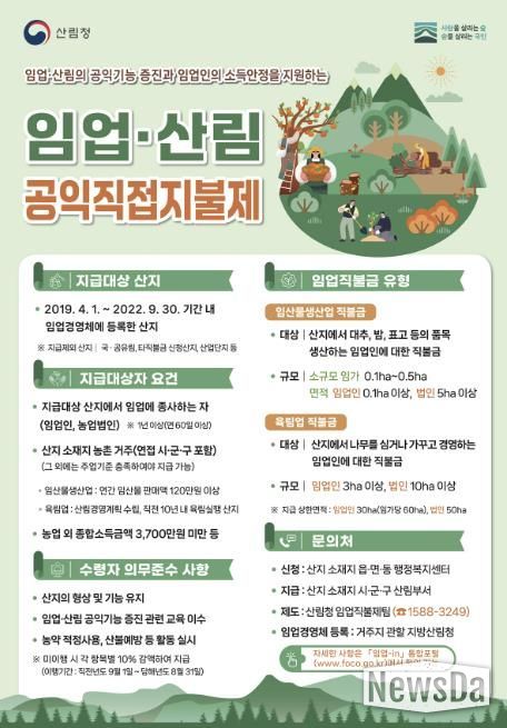 시는 신청 대상 임업인이 기간 내 신청할 수 있도록 관련 안내를 강화하고 제도 참여를 통해 산림의 공익적 가치 보전과 지속가능한 산림 관리가 이뤄질 수 있도록 지원할 방침이다.