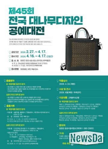 뉴스다 최광묵 기자 | 대나무의 고장 담양군이 유구한 역사를 자랑하는 국내 유일의 대나무공예 공모전인 ‘제45회 전국대나무디자인공예대전’을 개최한다.