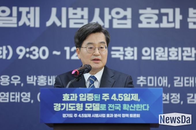 뉴스다 최광묵 기자 | 김동연 경기도지사가 경기도형 주4.5일제 도입 효과가 입증됐다며 전국적 확산과 대기업·중소기업 상생협력 모델 도입 의지를 강하게 밝혔다.