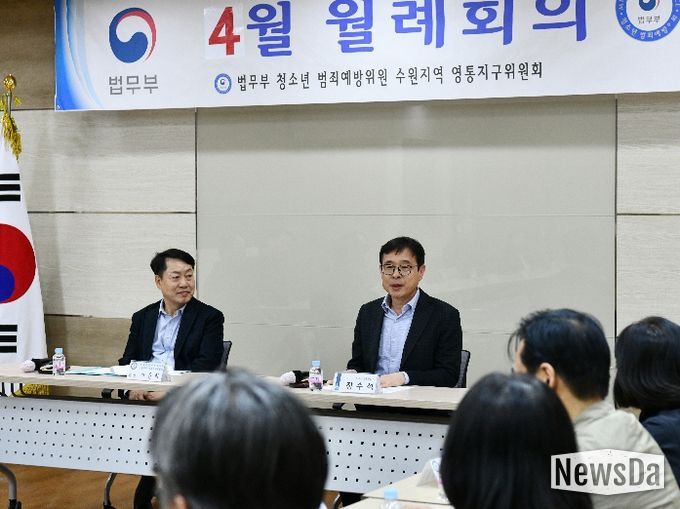 뉴스다 최광묵 기자 | 수원시 영통구는 지난 21일, 법무부 청소년 범죄예방위원 수원지역 영통지구위원회(이하 ‘범죄예방위원회’) 주관으로 영통구청 상황실에서 4월 월례회의를 개최했다.
