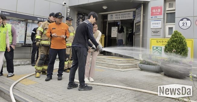뉴스다 최광묵 기자 | 수원시 영통구 매탄2동은 지난 4월 21일, 원천 119안전센터와 에스에스이엔씨(소방시설물관리업체), 매탄2동 소속 직원과 지역 주민 등이 참여한 가운데 2026년 공공기관 합동소방훈련을 실시했다.