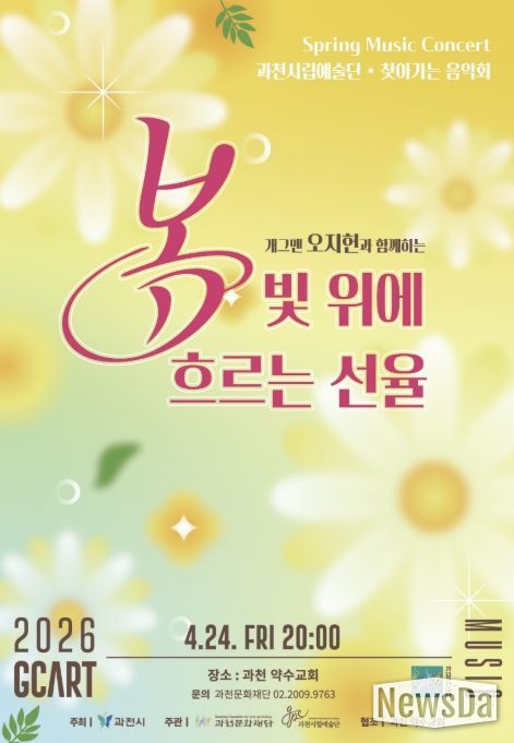 뉴스다 최광묵 기자 | 과천시는 오는 24일 오후 8시, 과천 약수교회에서 시민들을 위한 특별한 문화 공연 ‘봄빛 위에 흐르는 선율’을 개최한다.