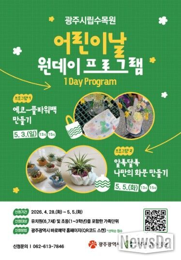 뉴스다 최광묵 기자 | 광주광역시 시립수목원은 어린이 가족이 함께 하는 ‘수목원 어린이날 원데이 프로그램’ 참가자를 오는 28일부터 선착순 모집한다.