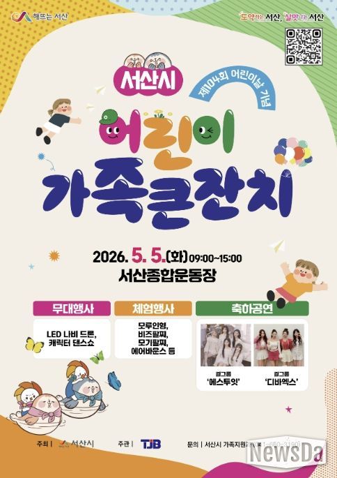 뉴스다 최광묵 기자 | 충남 서산시가 제104회 어린이날을 맞아 어린이 가족 큰잔치를 개최한다.