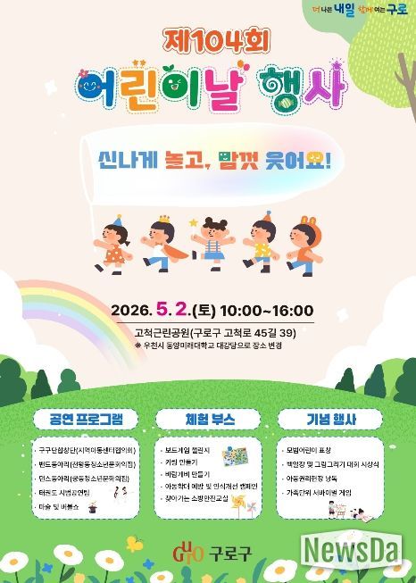 뉴스다 최광묵 기자 | 구로구가 제104회 어린이날을 맞아 오는 5월 2일 고척근린공원에서 어린이와 가족, 지역주민이 함께 즐길 수 있는 ‘어린이날 행사’를 개최한다.