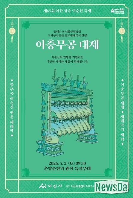 뉴스다 최광묵 기자 | 아산시가 충무공 이순신 탄신 제481주년을 기념해 오는 5월 2일 온양온천역 광장에서 이순신 장군의 안녕을 기원하는 다양한 제례와 체험을 제공하는 ‘이충무공 대제’ 행사를 개최한다.