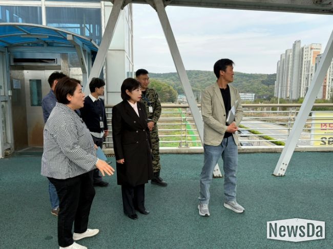 이날 현장에는 송옥란 의원을 비롯해 담당 공무원, 김은실 이장(양촌2리), 군부대 관계자 등이 함께 참석해 육교 및 엘리베이터의 운영 실태를 직접 확인하고 불편 사항을 공유했다. 현장을 꼼꼼히 살핀 송 의원은 엘리베이터 정기점 검 강화와 신속한 유지보수 체계 구축을 관계기관에 강력히 촉구했으며, 공사 기간 동안 학생들의 안전한 통행을 보장하기 위한 보완 대책 마련도 함께 요청했다.