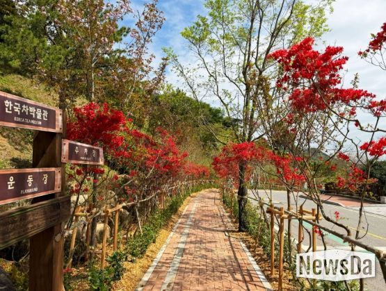 한국차문화공원 일원에는 ‘복합경관숲’이 조성된다. 품평관과 북루 사이 계곡 구간에는 목교 2개소를 설치하고, 팥꽃나무·공조팝나무·사계장미·황금실화백 등 다양한 수종을 식재해 경관을 강화했다.