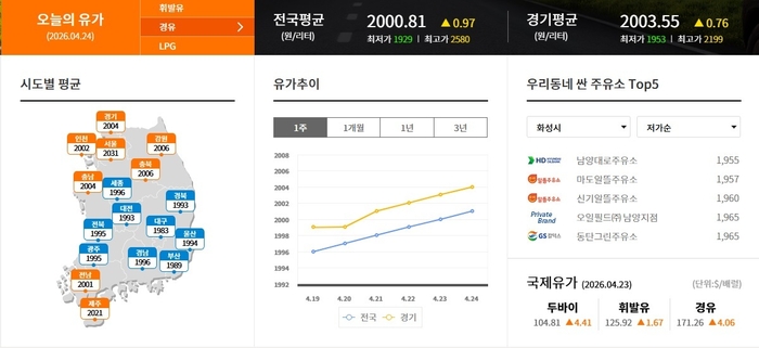 ▲화성시 경 유 제일 싼 주유소 1955원 남양대로주유소