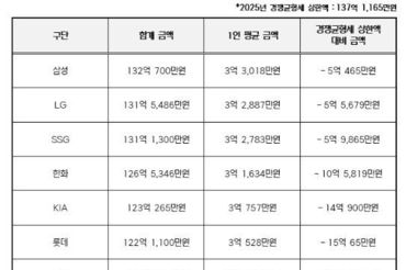 KBO, 2025년 구단별 연봉 상위 40명 합계 금액 발표