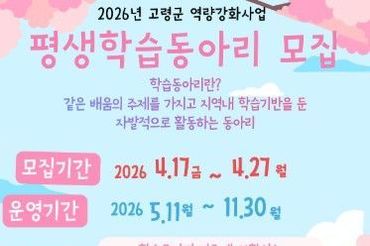 고령군, 2026년 ‘실천형’ 평생학습동아리 10개 팀 모집