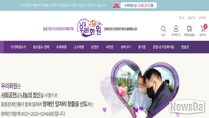 뉴스다 최광묵 기자 | 장애인표준사업장인 ㈜우리일터가 장애인 일자리 창출을 위해 의욕적으로 운영해 오던 전국 꽃배달사업부가 10월부터 더욱 적극적인 사회공헌을 위해 새로운 장애인기업으로 독립하여 운영된다.