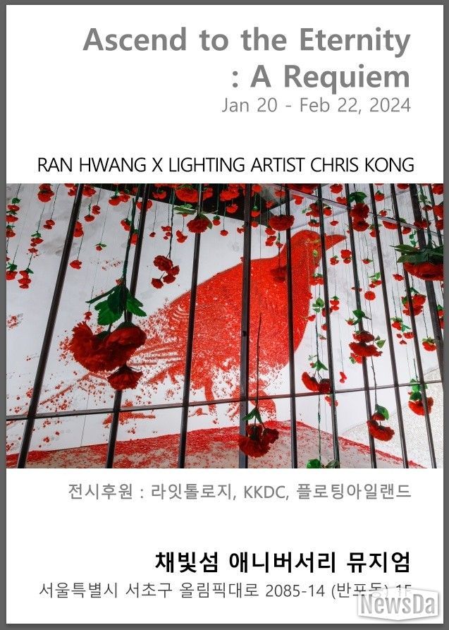 황란의 설치작품과 ‘라잇톨로지’의 라이팅 아티스트 크리스공과의 협업으로 빛과 어둠의 대비 그리고 오방컬러를 기반으로 한 스토리 연출을 통해 고요한 풍경에서 빛을 매개로 어둠을 뚫고 빛을 쏟아내는 과정을 희망적이고 미래적인 또다른 세상의 새로운 모습으로 승화시킨다.