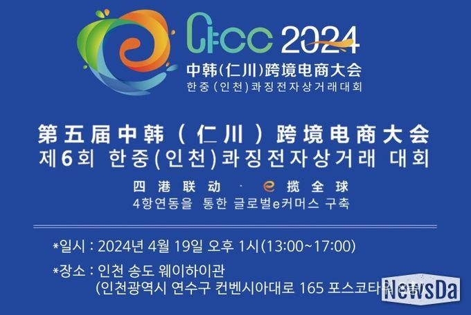 뉴스다 최광묵 기자 | 이달 19일 인천광역시 송도 포스코타워 8층 웨이하이관(대표 관장 상복술)에서 300여명이 참석한 가운데 제6회 2024년 한.중(인천)콰징전자상거래대회가 열린다.