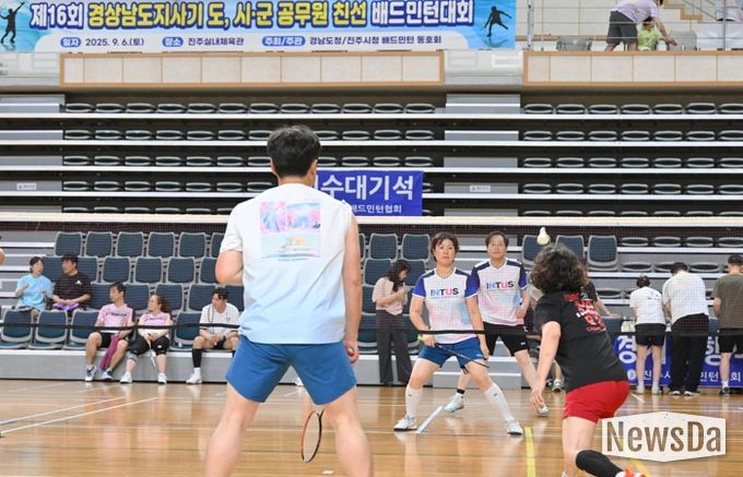 뉴스다 류대현 기자 | 진주시는 지난 6일 진주실내체육관에서‘제16회 경남도지사배 공무원 친선 배드민턴 대회’를 성황리에 개최하고, 개최지로서 종합우승을 차지하는 쾌거를 이뤘다고 밝혔다.